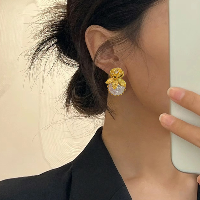Be the first to review “Silver Stud Rhinestone-encrusted Flower Irregular Pearl Earrings Elegant”